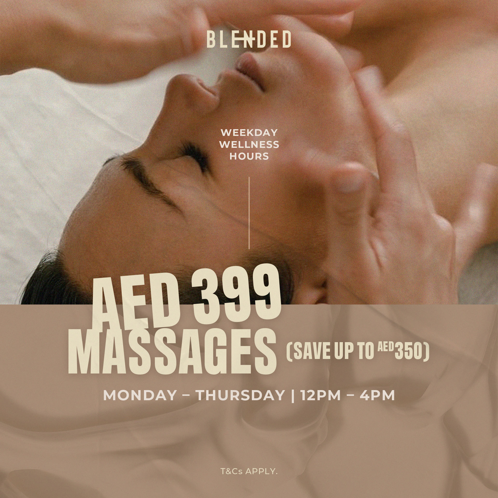 Midweek calm, reimagined. Enjoy AED 399 massages during our spa wellness hours – your favourite spa treatments, now for less.